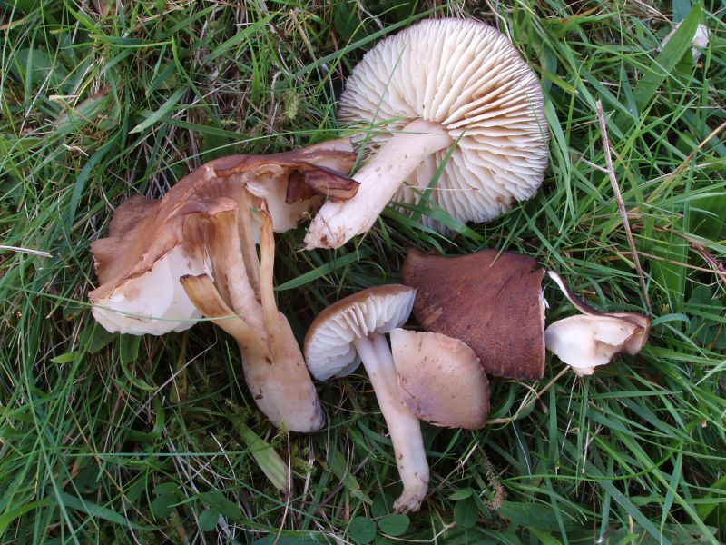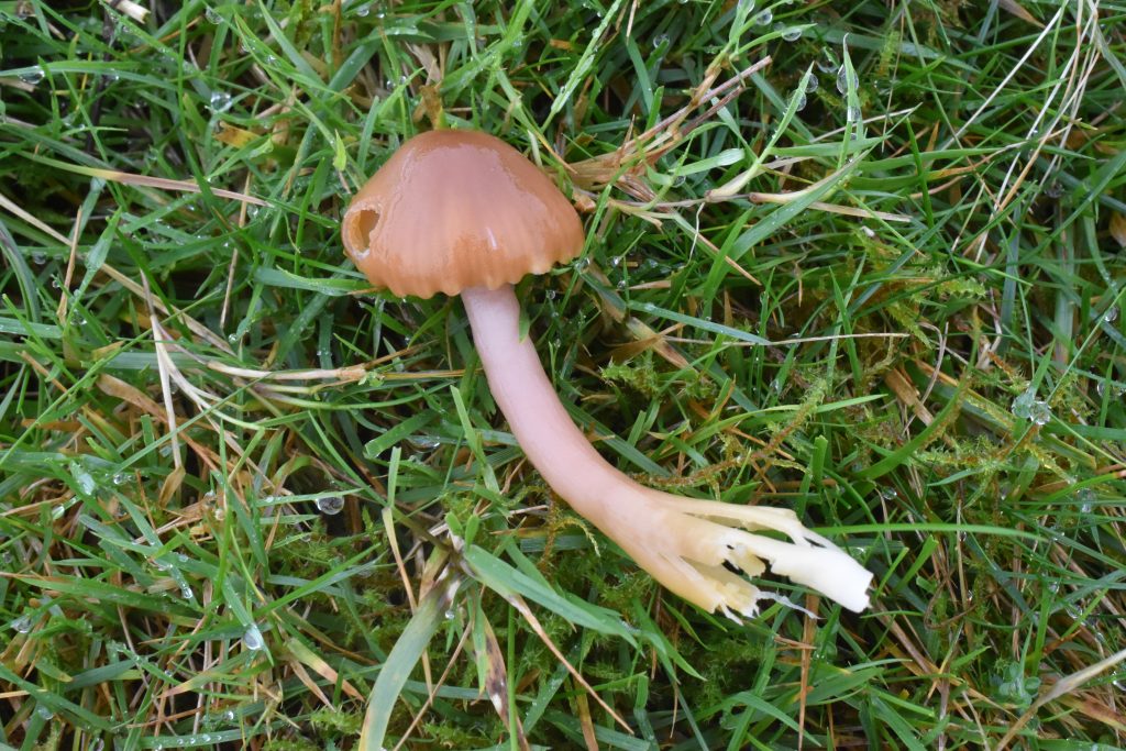 Only known in Ireland from the Curragh and Barnett’s Park. This is a special find. It is dry capped with a reddish brown colour and the stipe can be cream to brown. It has a fainter nitrous smell than N. nitrata (especially if cut) but the gills and flesh reddens. There is another similar species called Neohygrocybe pseudoingrata but this has not yet been found in the British Isles. It differs largely by not reddening, having a pale brown cap with an often contorted compressed stipe. See this paper for more information