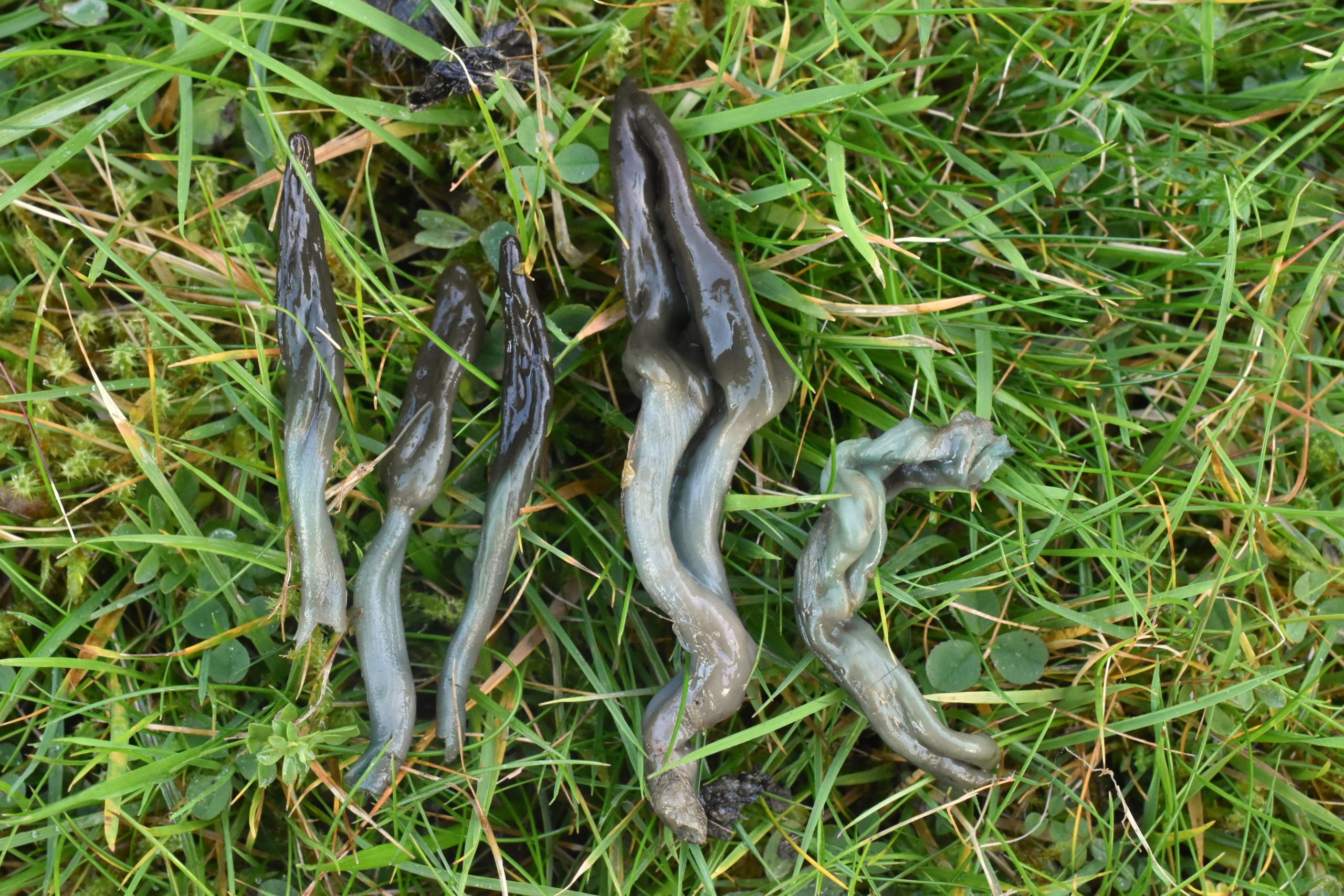 The Olive Earth Tongue, Microglossum olivaceum was long recognised as having lots of colour variants and it is now realised that these are usually different species. It takes a brave person to identify them without sequencing as there remain undescribed species in the group and so the keys are either incomplete or actually unreliable. One of the key features in the existing keys is spore length with species like M. pratense and M.tenebrosum have short spores. We often find short spored species that key to M. tenebrosum but that the sequences say they are M. truncatum or M. nudipes aff. (if comparing against the type sequences). This confusion can be because the published sequences are mislabelled maybe due to the species concepts being incorrect so we can only identify as best as we can at the moment and hope that future taxonomic work will help untangle the problem. The following are the species identified by sequencing this year: